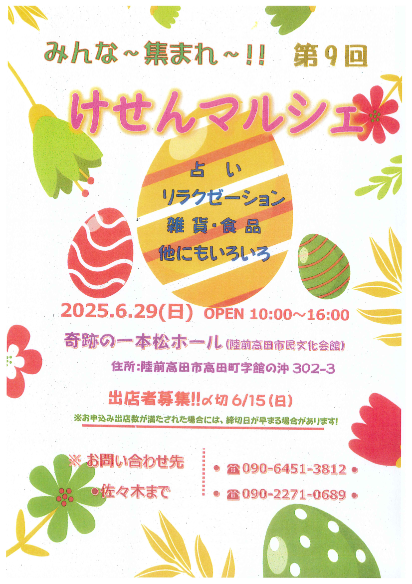 > 【6月29日開催】第9回 けせんマルシェが開催されます。