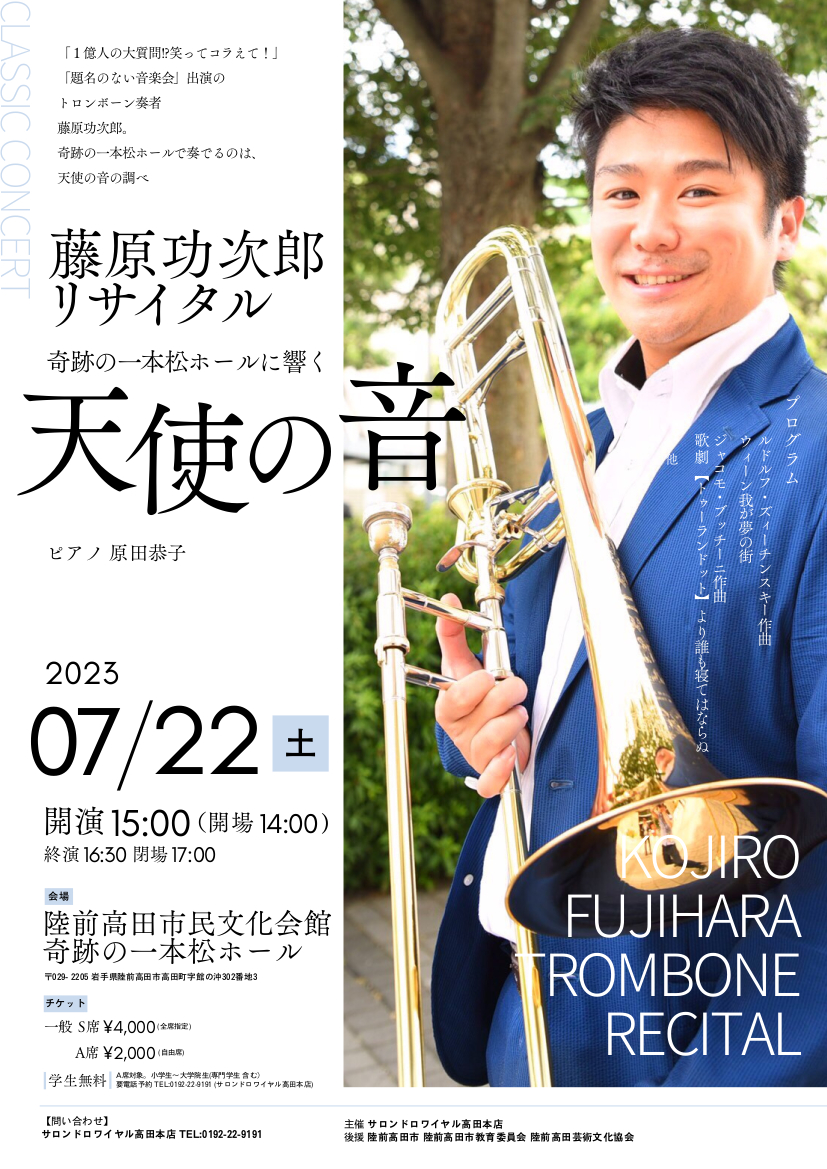 > 【7月22日開催】藤原功次郎リサイタル 奇跡の一本松ホールに響く「天使の音」が開催されます。