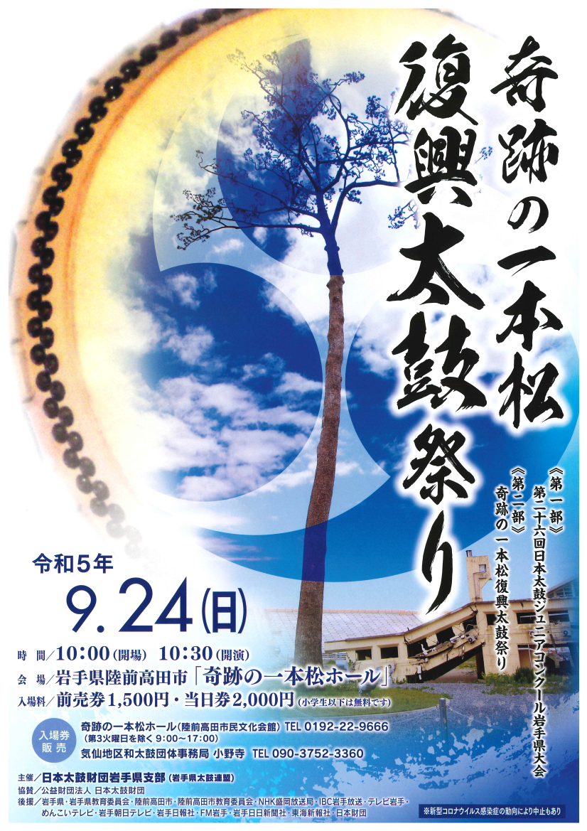 > 【9月24日開催】「奇跡の一本松復興太鼓祭り」が開催されます。