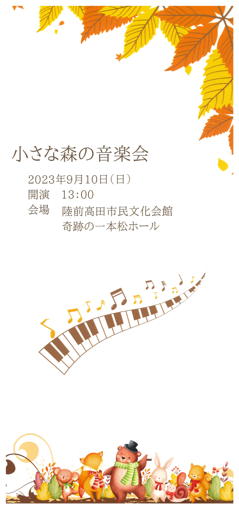 【9月10日開催】「小さな森の音楽会 田村尚子ピアノ教室」が開催されます。