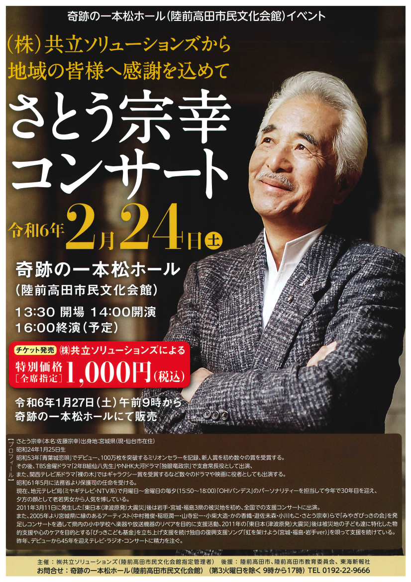 【2月24日開催】「さとう宗幸コンサート」を開催します。