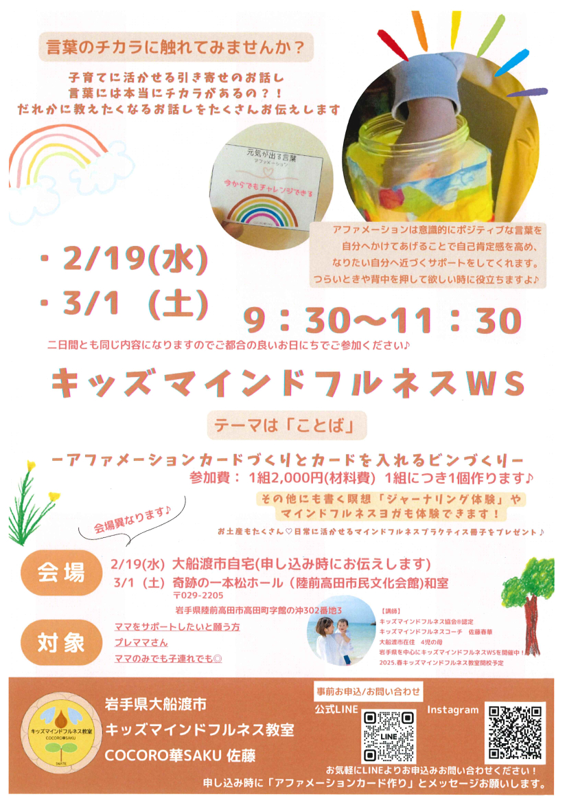 > 【3月1日開催】アファメーションカードづくり(キッズマインドフルネス教室)が開催されます。