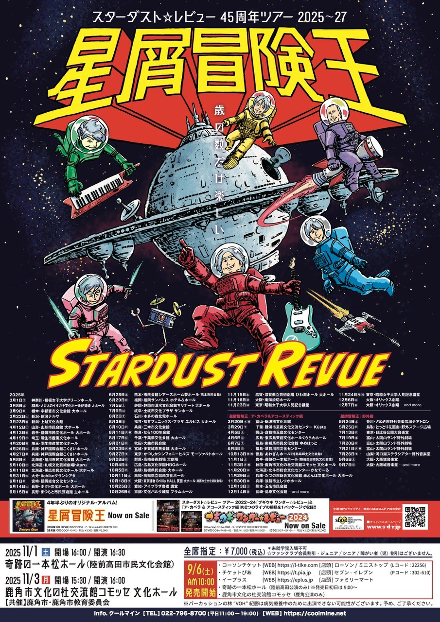 > 【11月1日】スターダスト☆レビュー45周年ツアー 2025~27「星屑冒険王」ア・カペラ&アコースティック編((株)クールマイン)が開催されます。