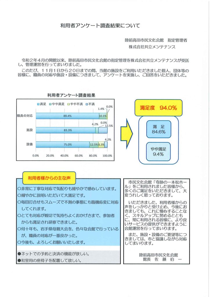 令和4年度 利用者アンケート調査結果について