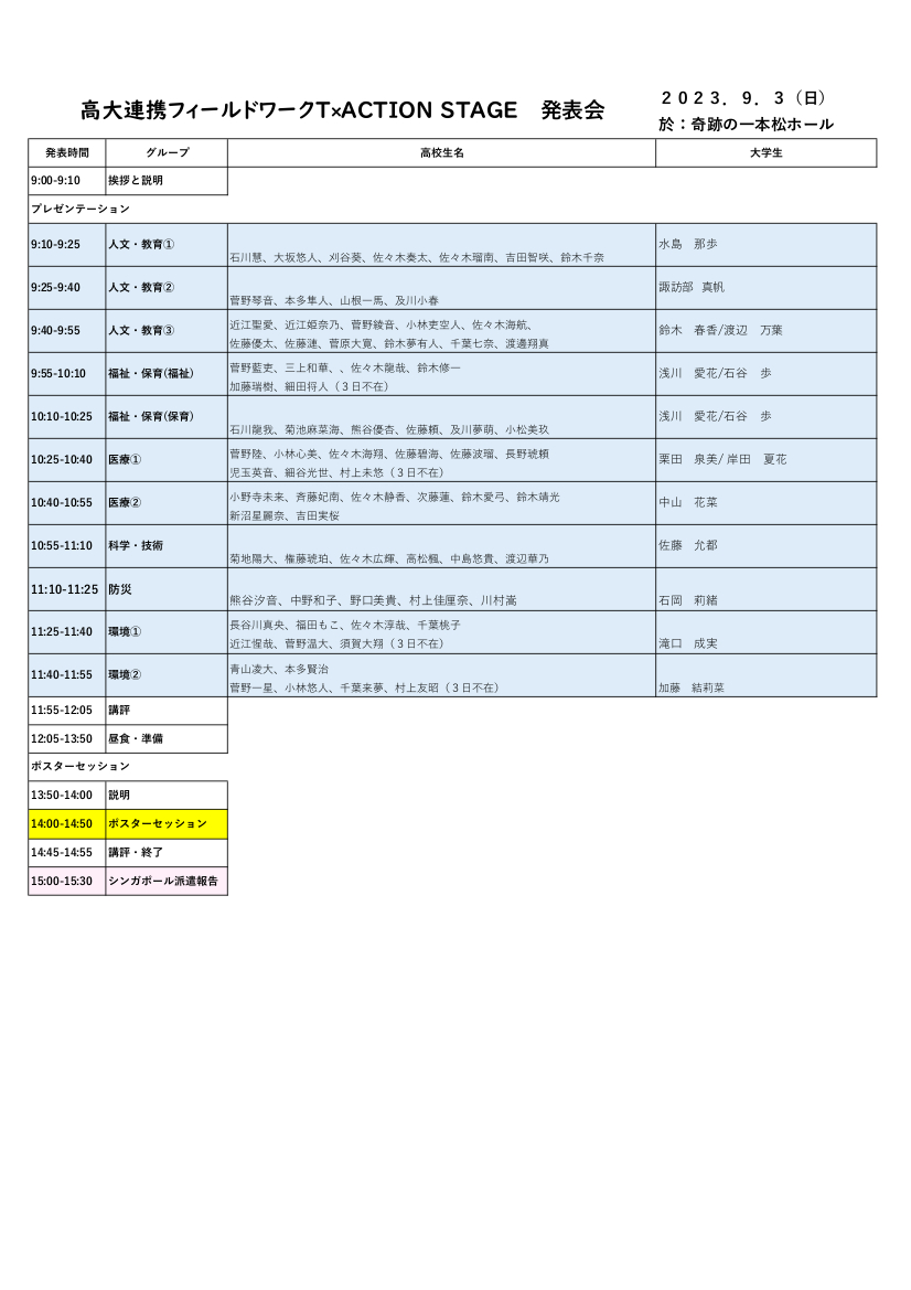 高田高校高大連携フィールドワークT×ACTION STAGE 発表会について