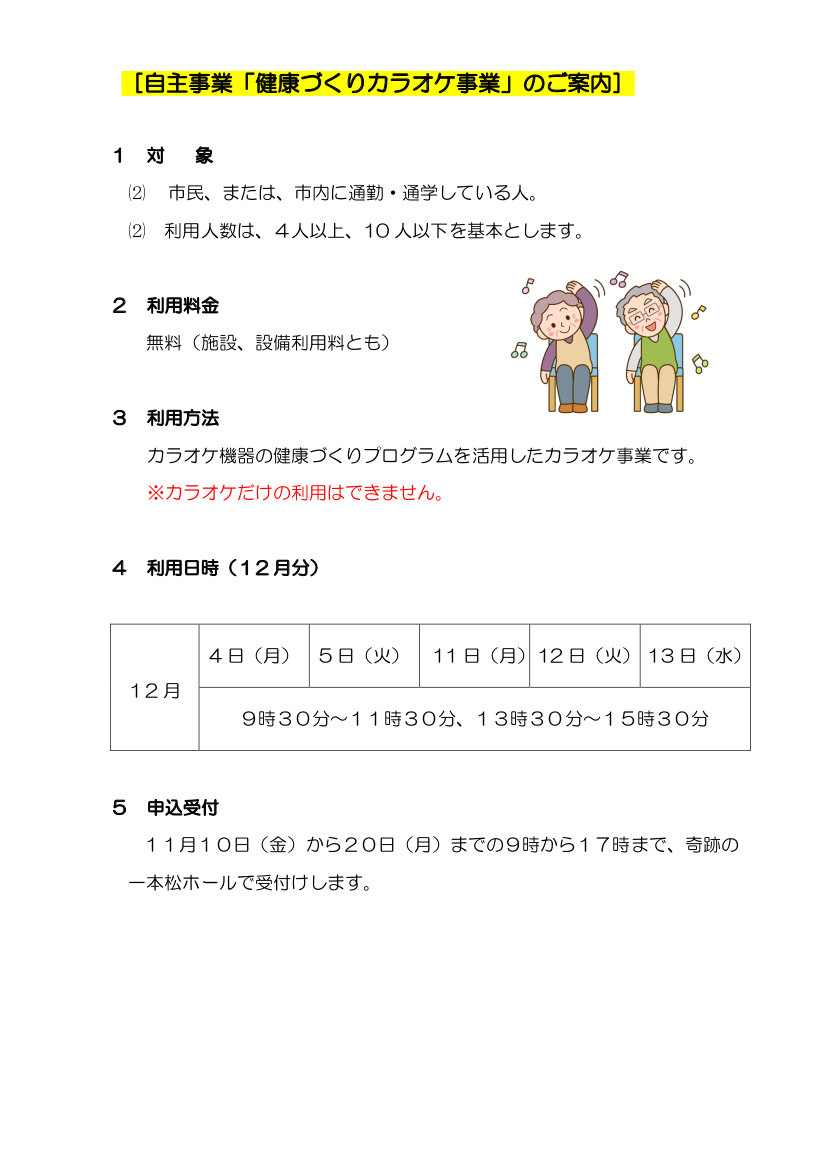 自主事業「健康づくりカラオケ事業」のご案内(12月分)
