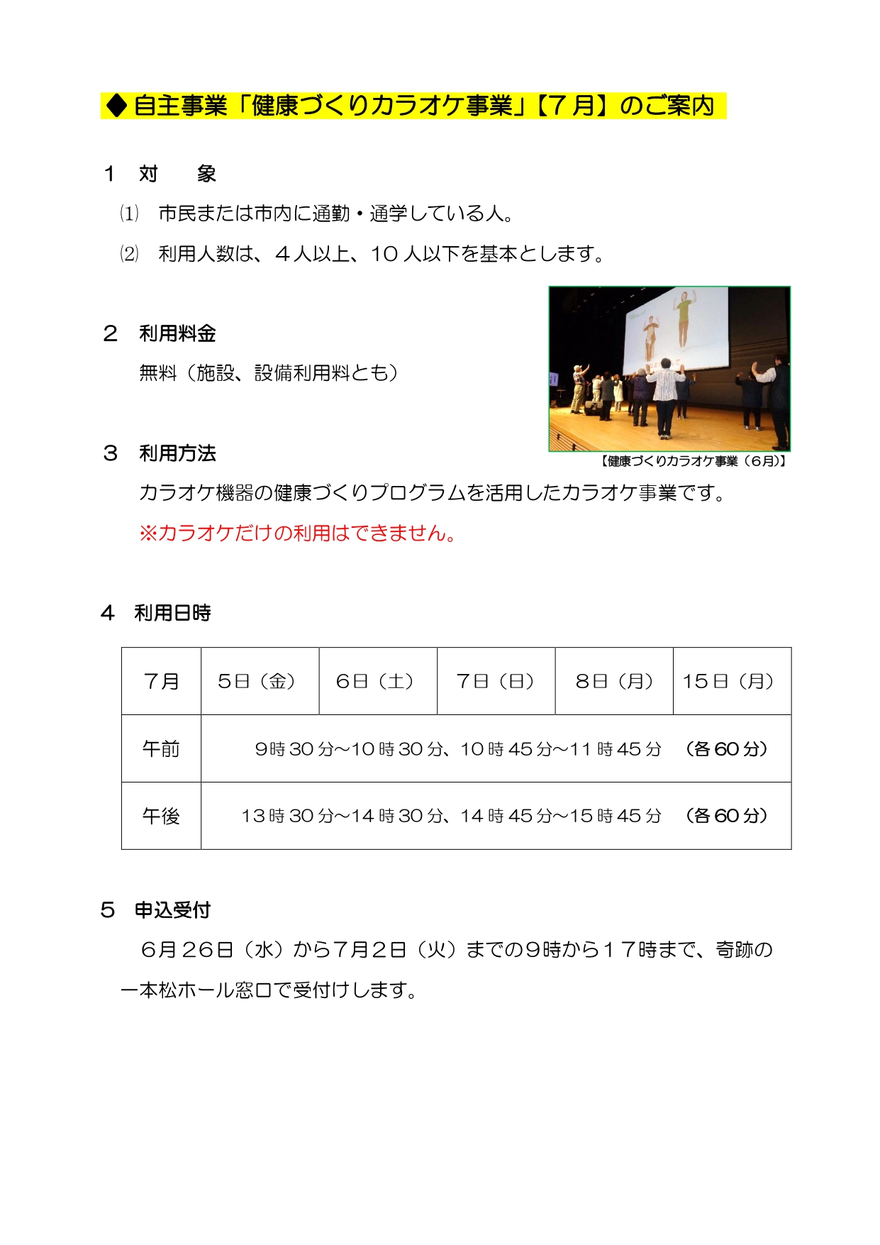 自主事業「健康づくりカラオケ事業」のご案内(7月分)